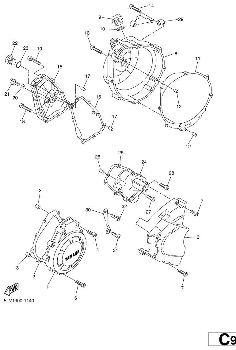 Moottorin kopat, FZS1000 2005, FZS1000, 1000 cc, Yamaha -varaosa luettelot