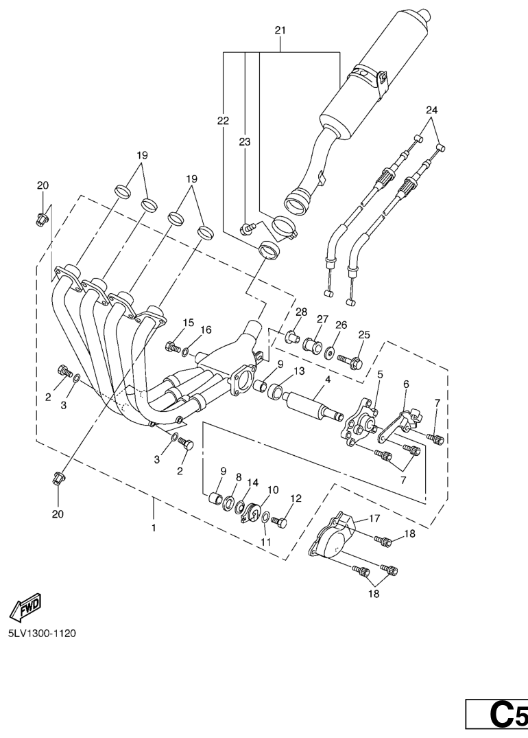 Pakoputkisto, FZS1000 2005, FZS1000, 1000 cc, Yamaha -varaosa luettelot
