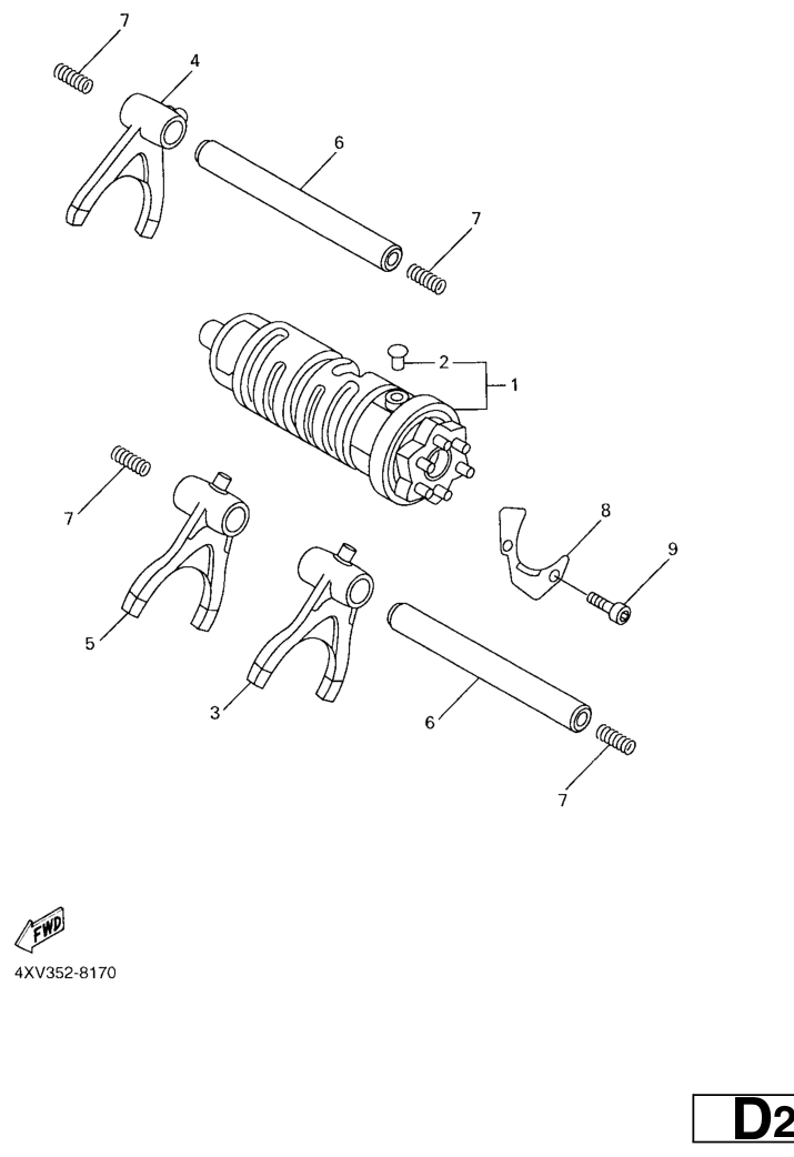 Vaihderumpu ja haarukat, FZS1000 2005, FZS1000, 1000 cc, Yamaha -varaosa luettelot