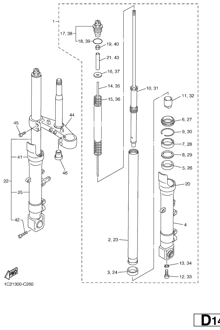 Etuhaarukka, FZS1000S 2005, FZS1000, 1000 cc, Yamaha -varaosa luettelot
