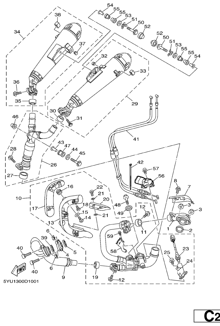 Pakoputkisto, MT-01 2005, MT-01, 1000 cc, Yamaha -varaosa luettelot