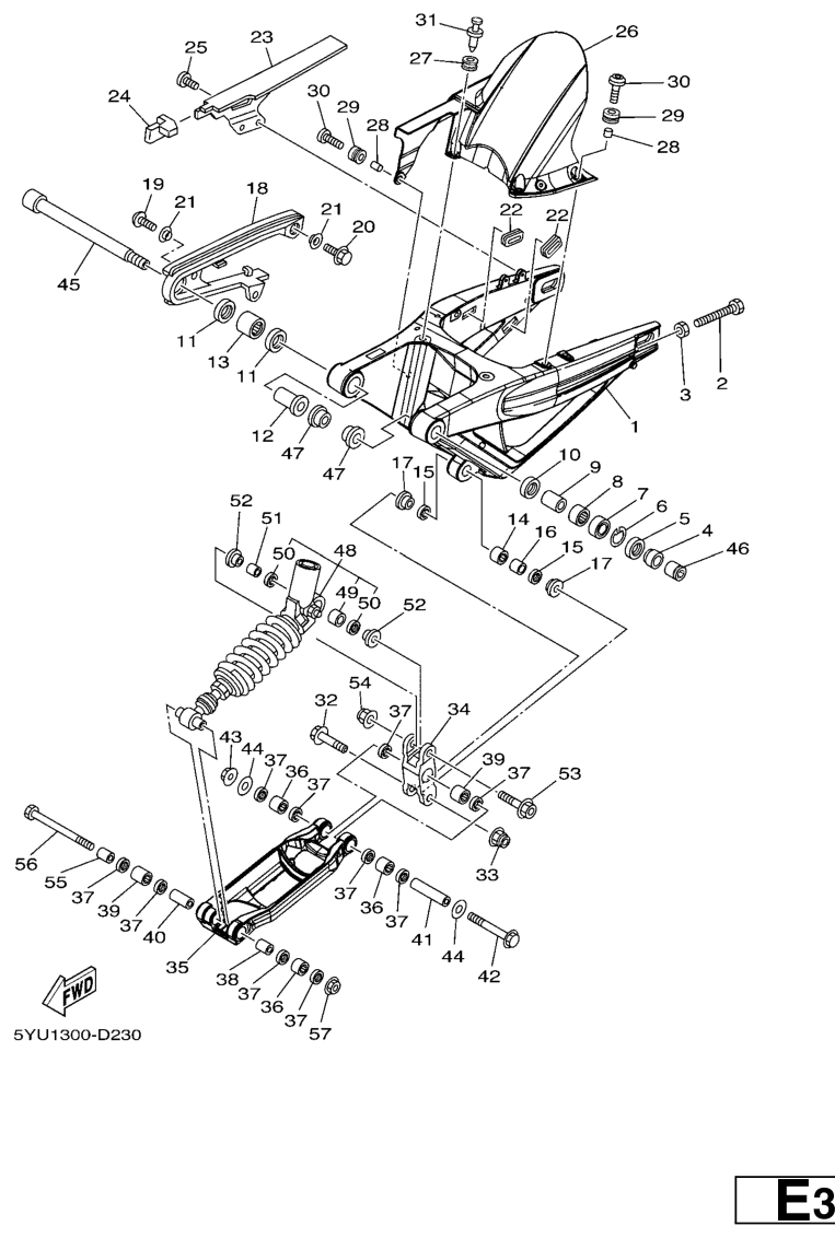 Takahaarukka ja jousitus, MT-01 2005, MT-01, 1000 cc, Yamaha -varaosa luettelot