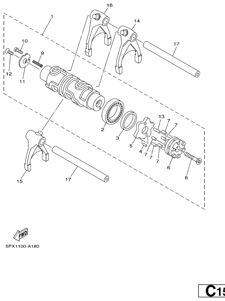 Vaihderumpu ja haarukat, MT-01 2006, MT-01, 1000 cc, Yamaha -varaosa luettelot