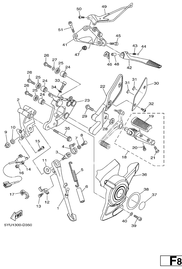 Seisontatuki ja jalkatapit, MT-01 2007, MT-01, 1000 cc, Yamaha -varaosa luettelot