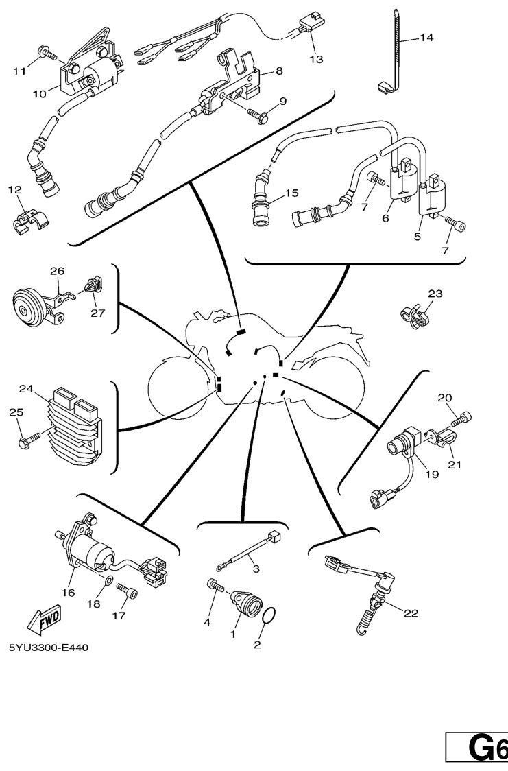 Sähköjestelmä 1, MT-01 2008, MT-01, 1000 cc, Yamaha -varaosa luettelot
