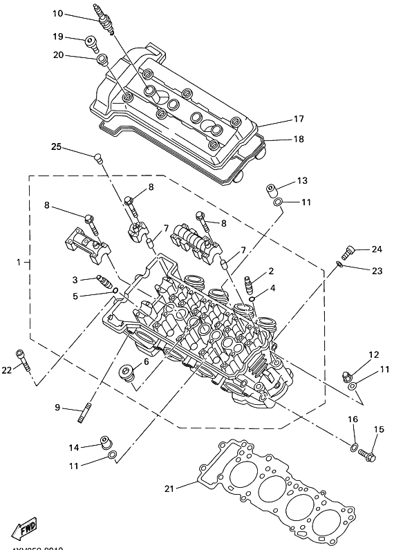 1-Sylinterin kansi, YZF-R1 1000 1998, 1000 cc, Yamaha -varaosa luettelot