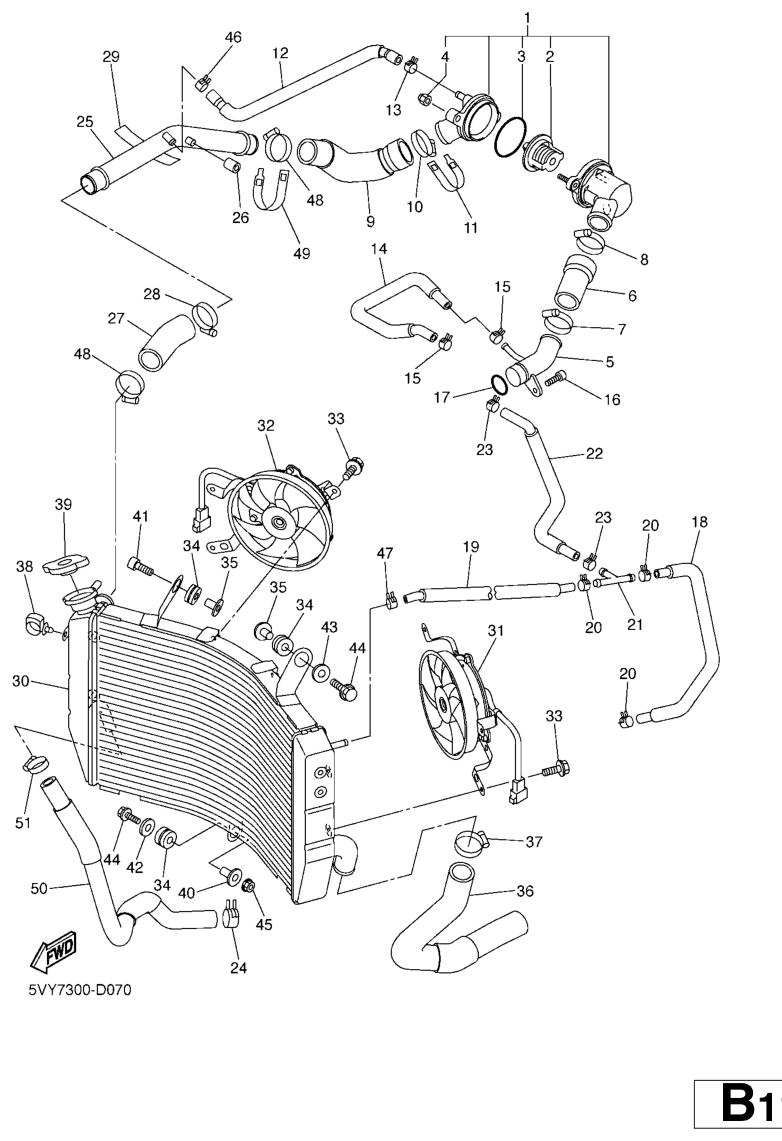 Jäähdytin ja letkut, YZF-R1 2005, YZF-R1, 1000 cc, Yamaha -varaosa luettelot