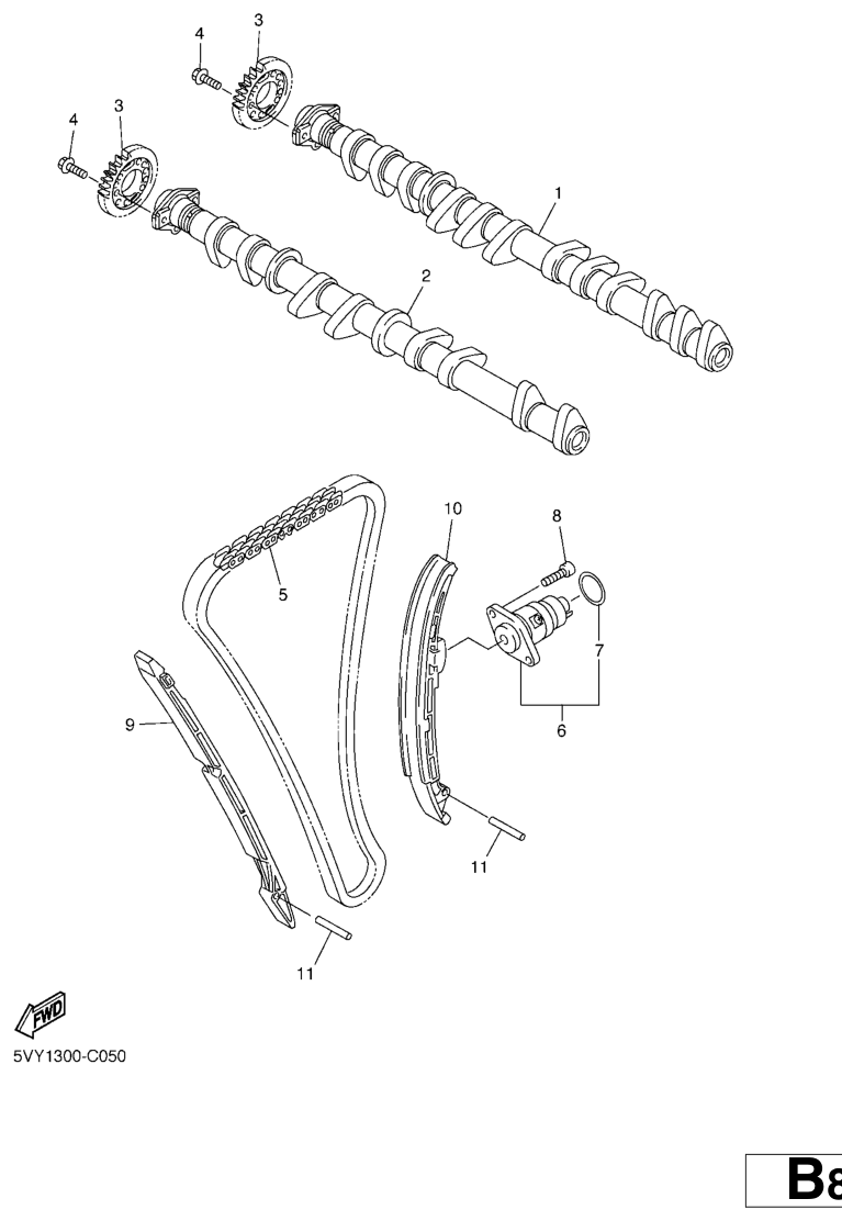 Nokka-akseli ja ketju, YZF-R1 2005, YZF-R1, 1000 cc, Yamaha -varaosa luettelot