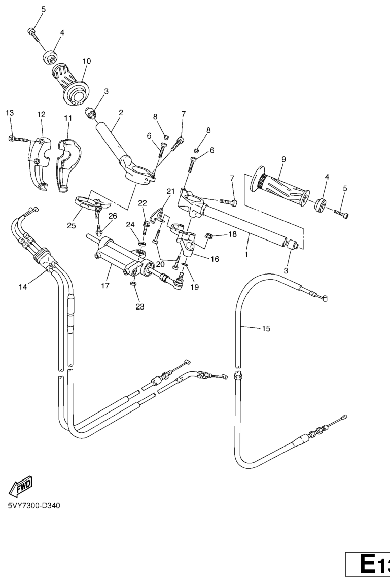 Ohjaustanko ja vaijerit, YZF-R1 2005, YZF-R1, 1000 cc, Yamaha -varaosa luettelot