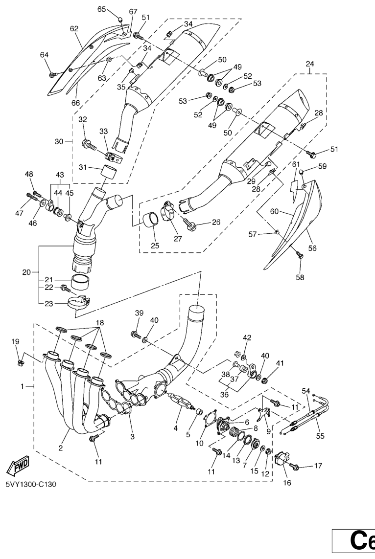 Pakoputkisto, YZF-R1 2005, YZF-R1, 1000 cc, Yamaha -varaosa luettelot
