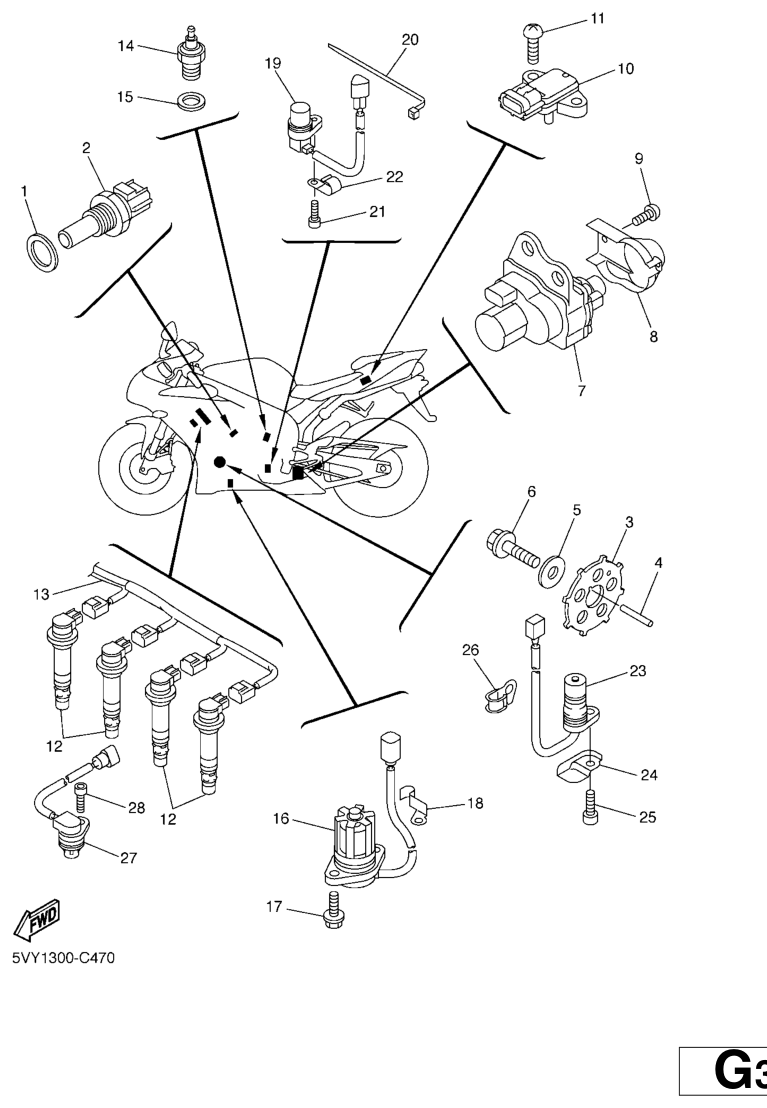 Sähköjestelmä 1, YZF-R1 2005, YZF-R1, 1000 cc, Yamaha -varaosa luettelot