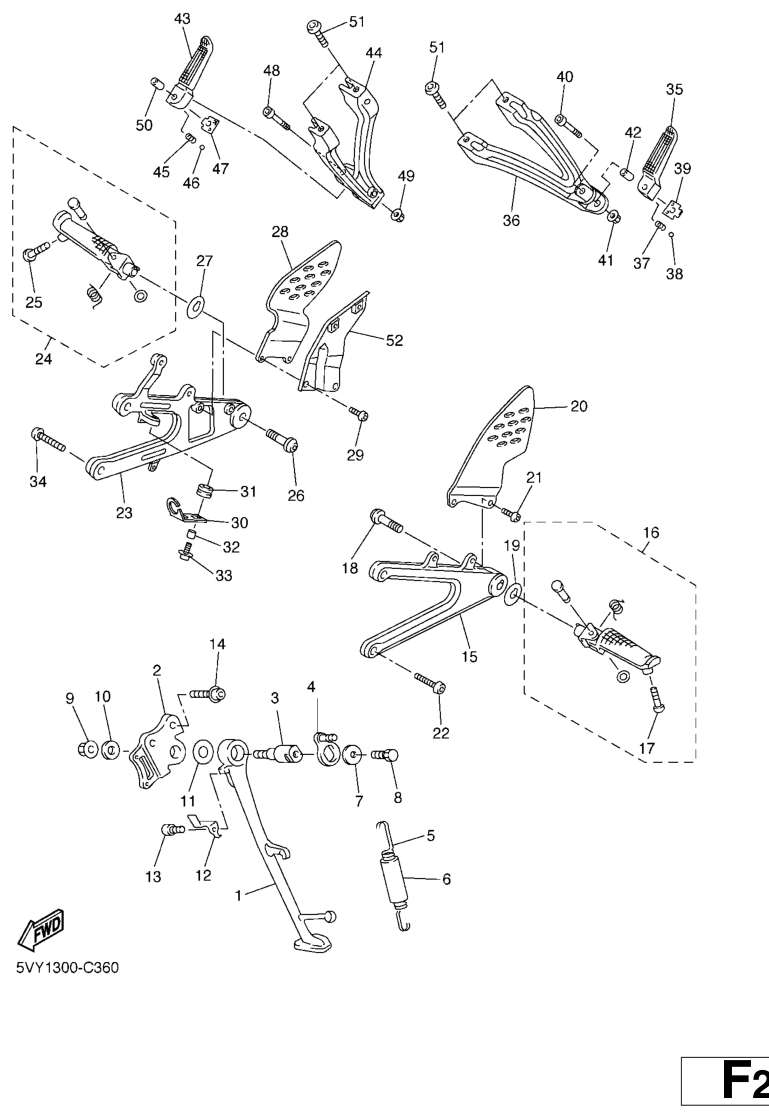 Seisontatuki ja jalkatapit, YZF-R1 2005, YZF-R1, 1000 cc, Yamaha -varaosa luettelot
