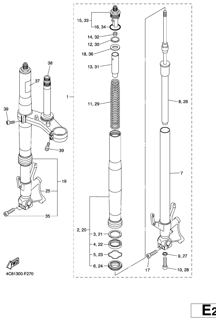 Etuhaarukka, YZF-R1 2007, YZF-R1, 1000 cc, Yamaha -varaosa luettelot