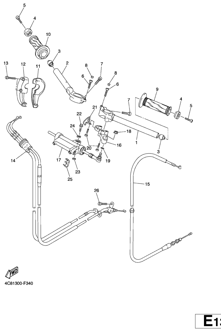 Ohjaustanko ja vaijerit, YZF-R1 2007, YZF-R1, 1000 cc, Yamaha -varaosa luettelot