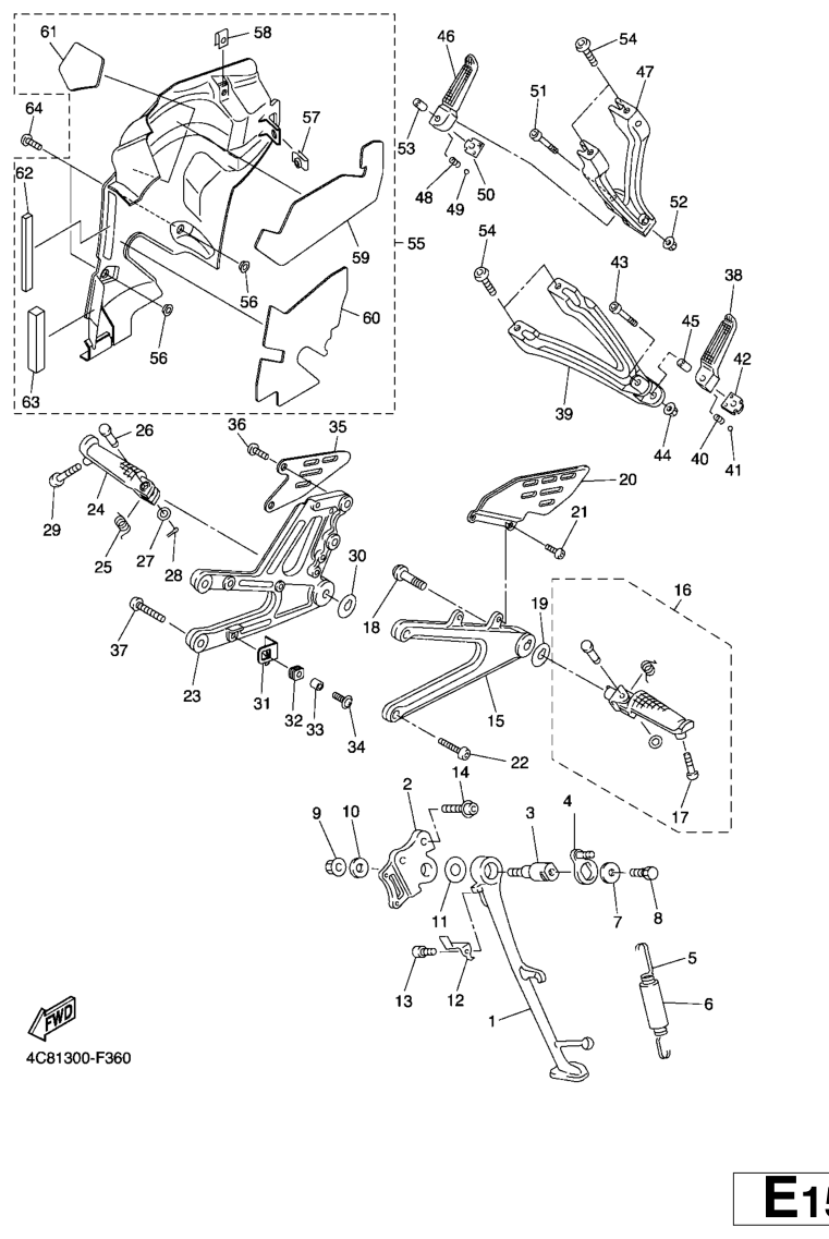 Seisontatuki ja jalkatapit, YZF-R1 2007, YZF-R1, 1000 cc, Yamaha -varaosa luettelot