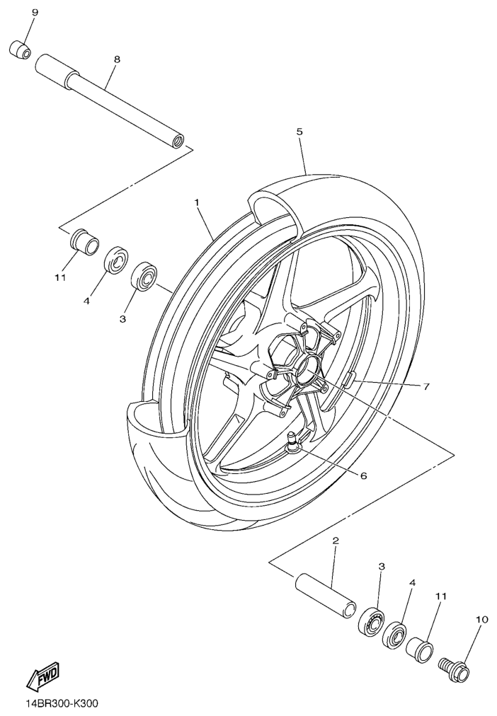 Etupyörä, YZF-R1 2012, YZF-R1, 1000 cc, Yamaha -varaosa luettelot