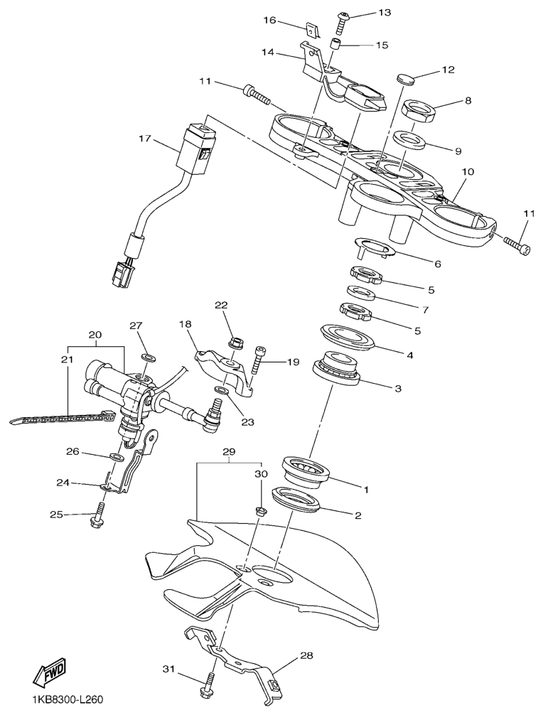 Ohjaus, YZF-R1 2012, YZF-R1, 1000 cc, Yamaha -varaosa luettelot