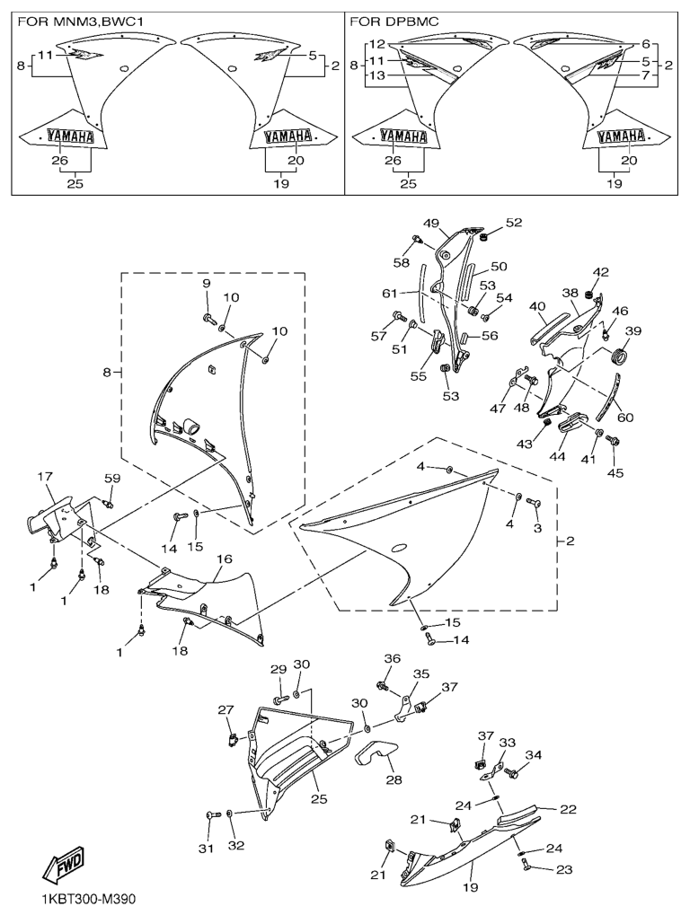Cowling 2, YZF-R1 2013, YZF-R1, 1000 cc, Yamaha -varaosa luettelot