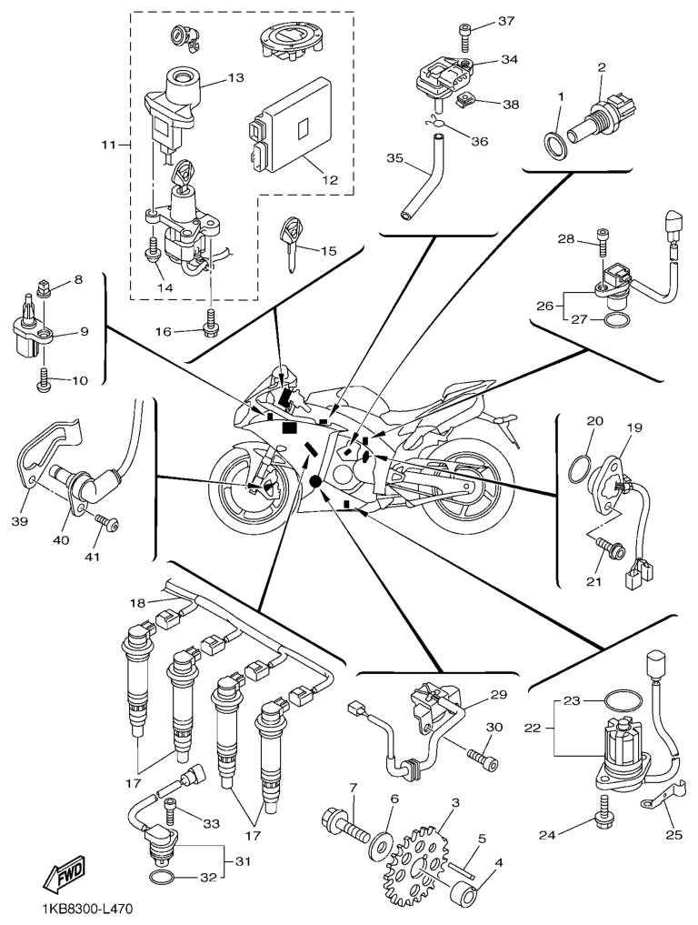Sähköjestelmä 1, YZF-R1 2013, YZF-R1, 1000 cc, Yamaha -varaosa luettelot