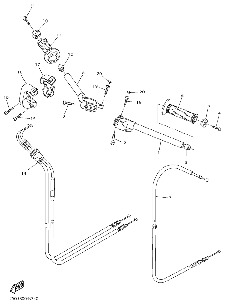 Ohjaustanko ja vaijerit, YZF-R1 2014, YZF-R1, 1000 cc, Yamaha -varaosa luettelot