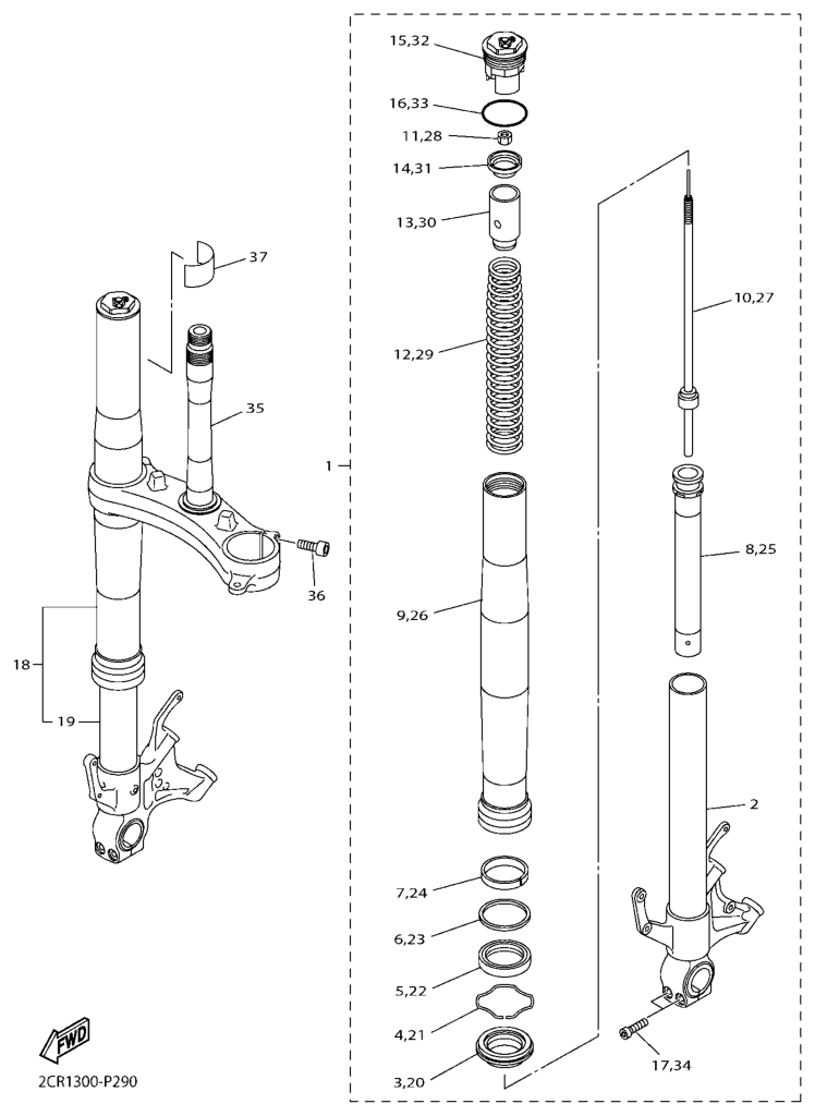 Etuhaarukka, YZF-R1 2015, YZF-R1, 1000 cc, Yamaha -varaosa luettelot