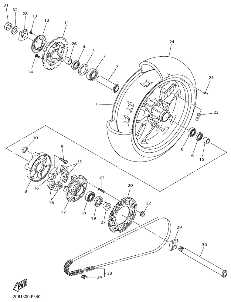 Takapyörä, YZF-R1 2015, YZF-R1, 1000 cc, Yamaha -varaosa luettelot