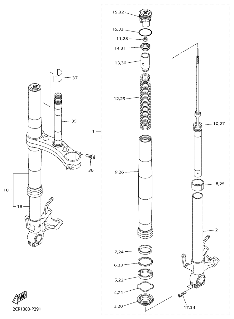 Etuhaarukka, YZF-R1 2016, YZF-R1, 1000 cc, Yamaha -varaosa luettelot