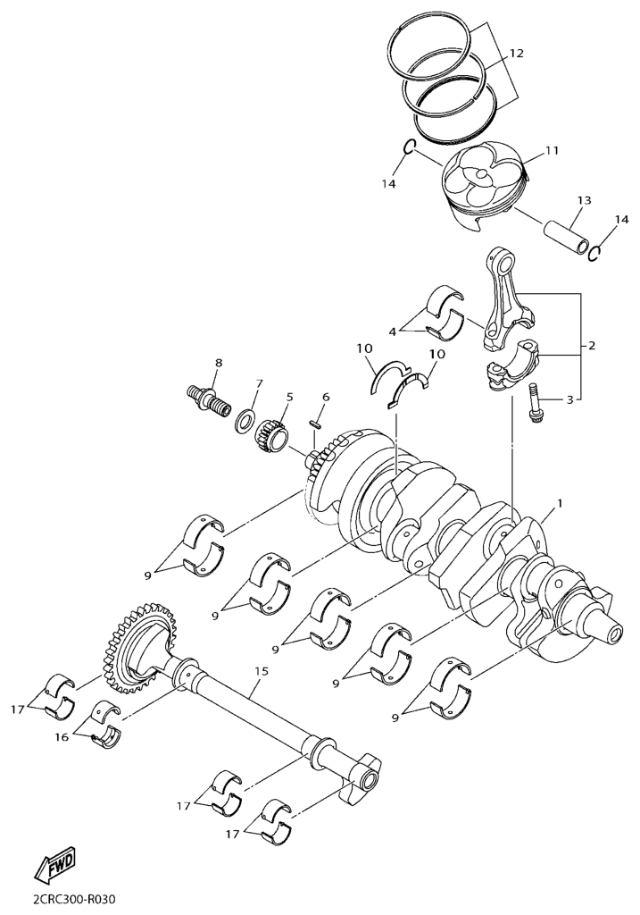 Kampiakseli ja mäntä, YZF-R1 2017, YZF-R1, 1000 cc, Yamaha -varaosa luettelot