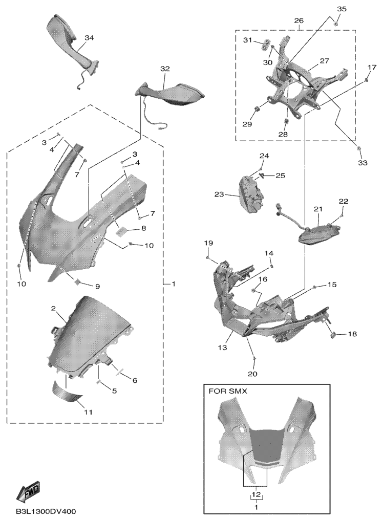 Cowling 1, YZF-R1 2020, YZF-R1, 1000 cc, Yamaha -varaosa luettelot