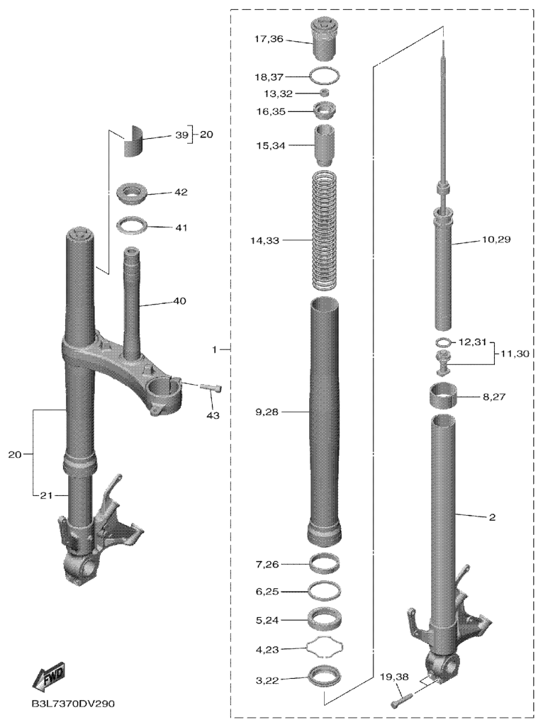 Etuhaarukka, YZF-R1 2020, YZF-R1, 1000 cc, Yamaha -varaosa luettelot