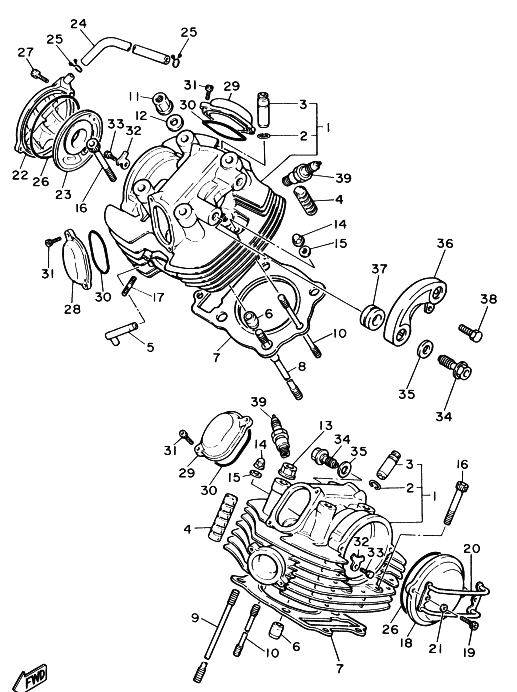 1-Sylinterin kansi, XV1100 VIRAGO 1997, 1100 cc, Yamaha -varaosa luettelot