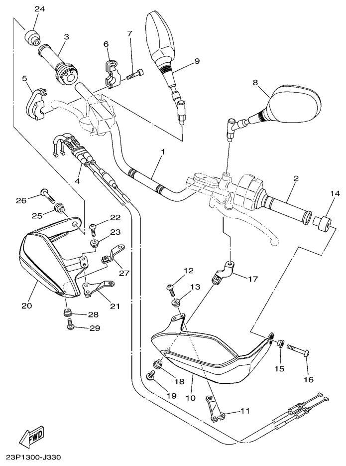 Ohjaustanko ja vaijerit, XT1200Z 2010 , XTZ1200 Super Ténéré, 1200 cc, Yamaha -varaosa luettelot