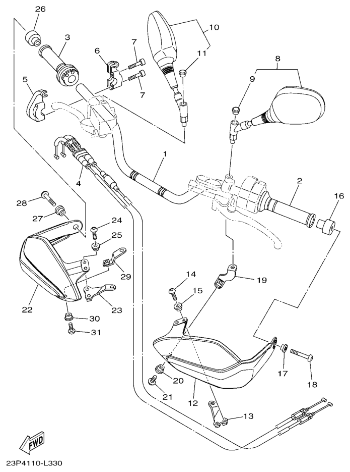 Ohjaustanko ja vaijerit, XT1200Z ABS 2013, XTZ1200 Super Ténéré, 1200 cc, Yamaha -varaosa luettelot
