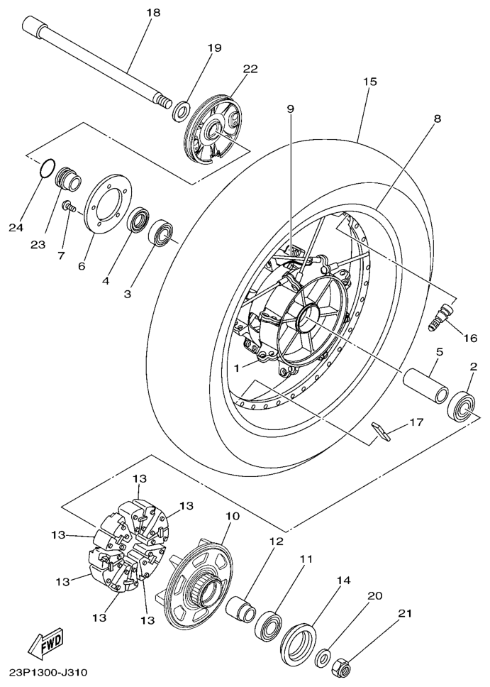 Takapyörä, XT1200Z ABS 2014, XTZ1200 Super Ténéré, 1200 cc, Yamaha -varaosa luettelot