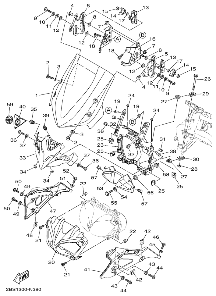 Tuulilasi, XT1200Z ABS 2019, XTZ1200 Super Ténéré, 1200 cc, Yamaha -varaosa luettelot