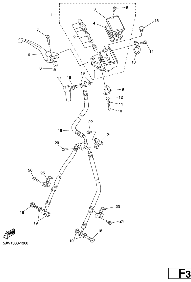 Etujarrun pääsylinteri, FJR1300 2001, FJR1300, 1300 cc, Yamaha -varaosa luettelot