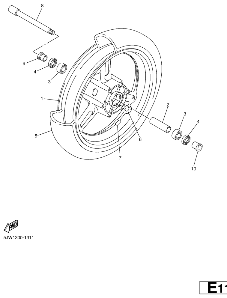 Etupyörä, FJR1300 2001, FJR1300, 1300 cc, Yamaha -varaosa luettelot