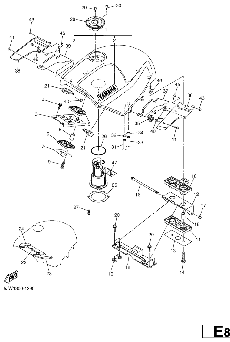 Fuel tank, FJR1300 2001, FJR1300, 1300 cc, Yamaha -varaosa luettelot