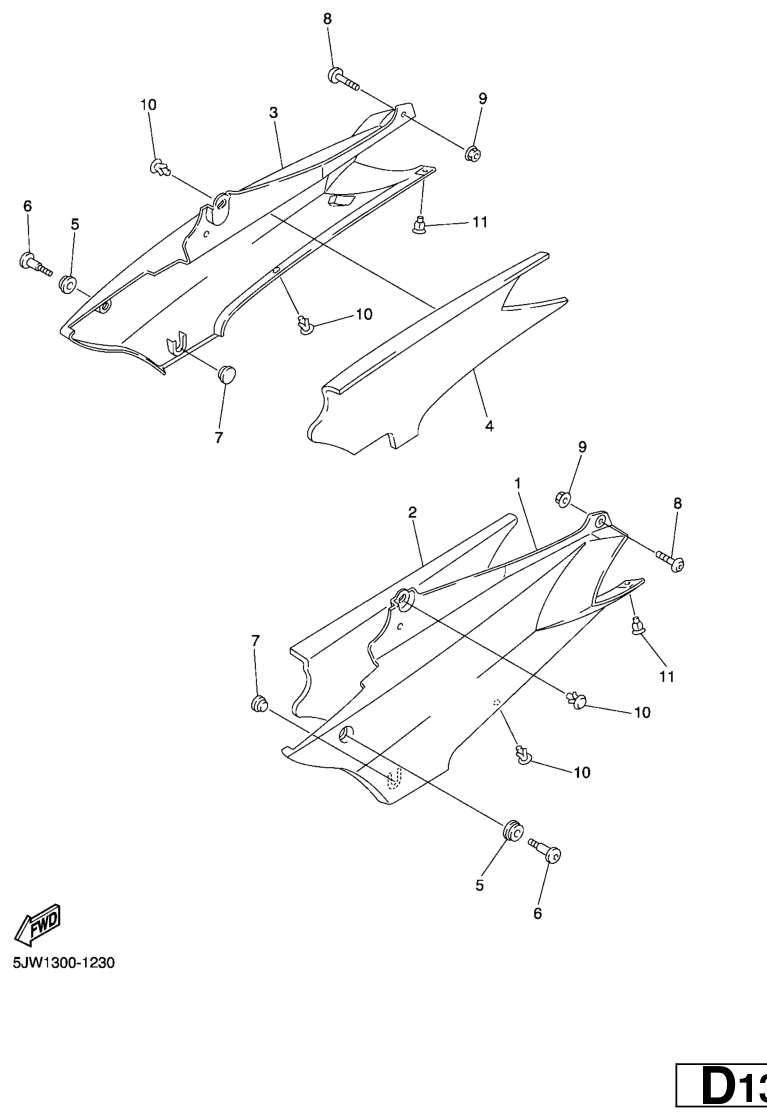 Side cover, FJR1300 2001, FJR1300, 1300 cc, Yamaha -varaosa luettelot