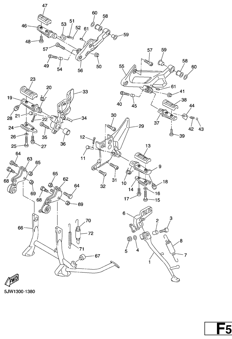 Stand. footrest, FJR1300 2002, FJR1300, 1300 cc, Yamaha -varaosa luettelot