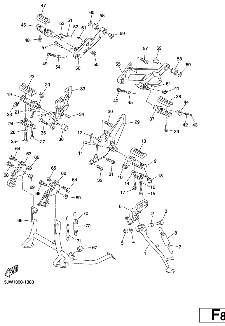 Seisontatuki ja jalkatapit, FJR1300 2003, FJR1300, 1300 cc, Yamaha -varaosa luettelot