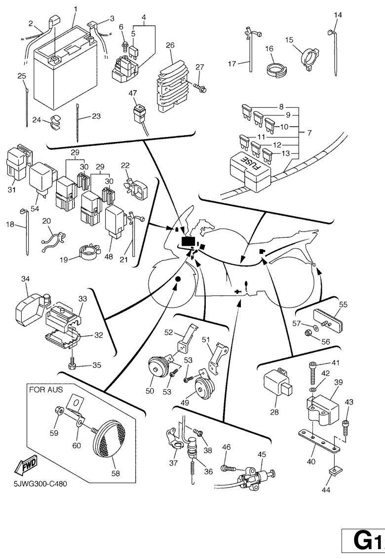 Sähköjestelmä 2, FJR1300 2004, FJR1300, 1300 cc, Yamaha -varaosa luettelot