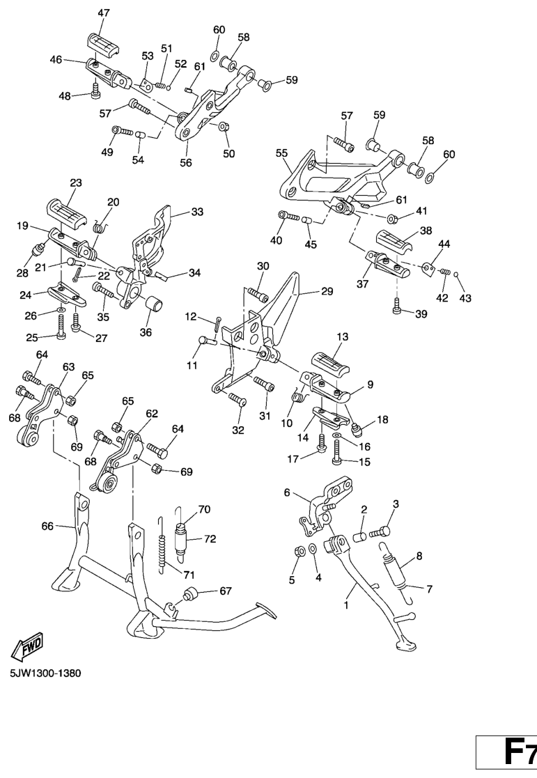Seisontatuki ja jalkatapit, FJR1300 2004, FJR1300, 1300 cc, Yamaha -varaosa luettelot