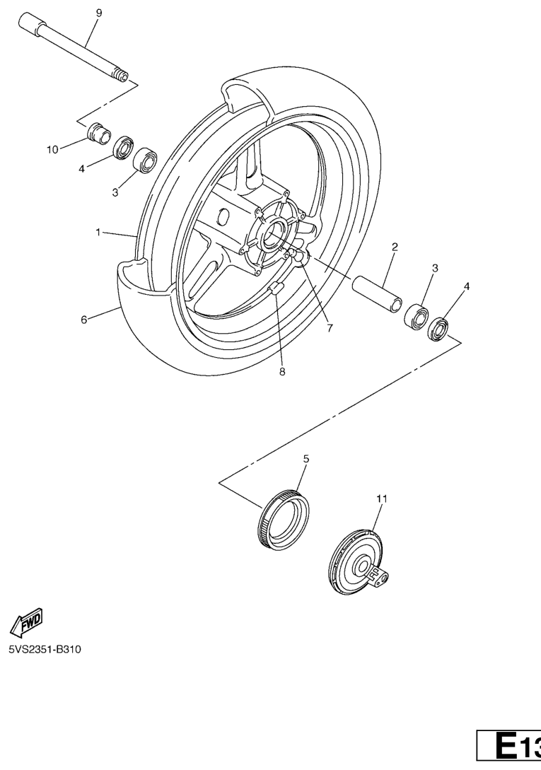 Etupyörä, FJR1300A 2003, FJR1300, 1300 cc, Yamaha -varaosa luettelot
