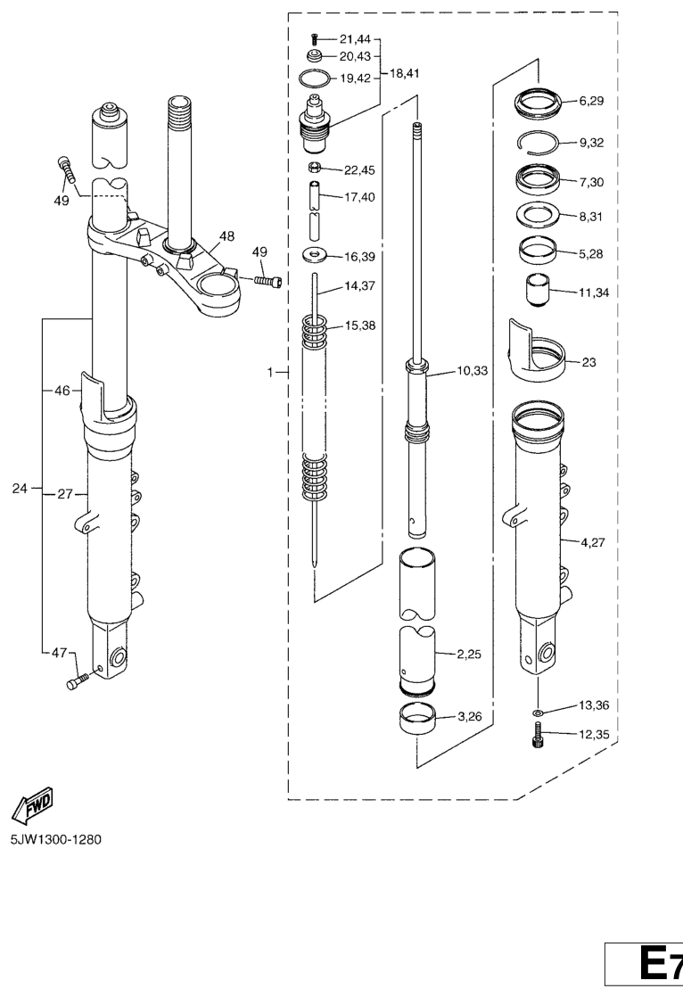 Etuhaarukka, FJR1300A 2004, FJR1300, 1300 cc, Yamaha -varaosa luettelot