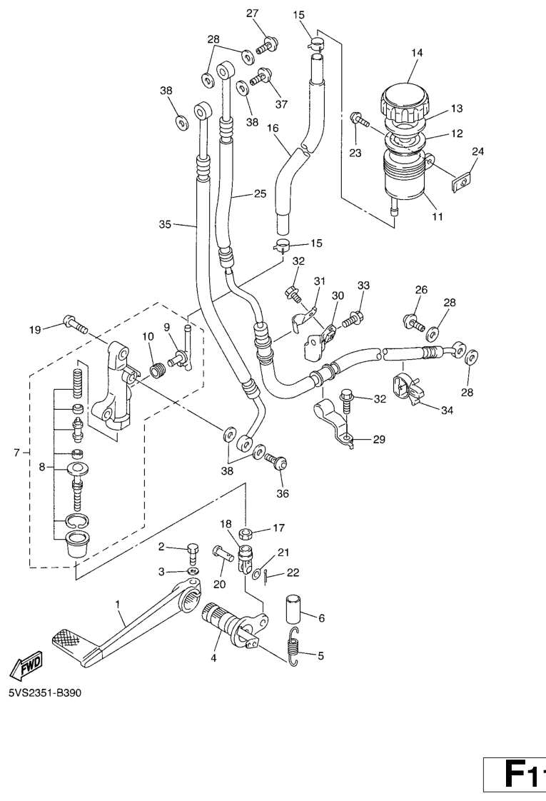 Takajarrun pääsylinteri, FJR1300A 2004, FJR1300, 1300 cc, Yamaha -varaosa luettelot