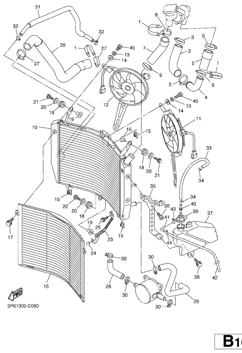 Jäähdytin ja letkut, FJR1300A 2006, FJR1300, 1300 cc, Yamaha -varaosa luettelot