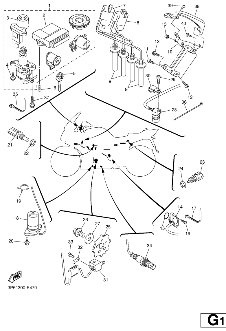 Sähköjestelmä 1, FJR1300A 2006, FJR1300, 1300 cc, Yamaha -varaosa luettelot