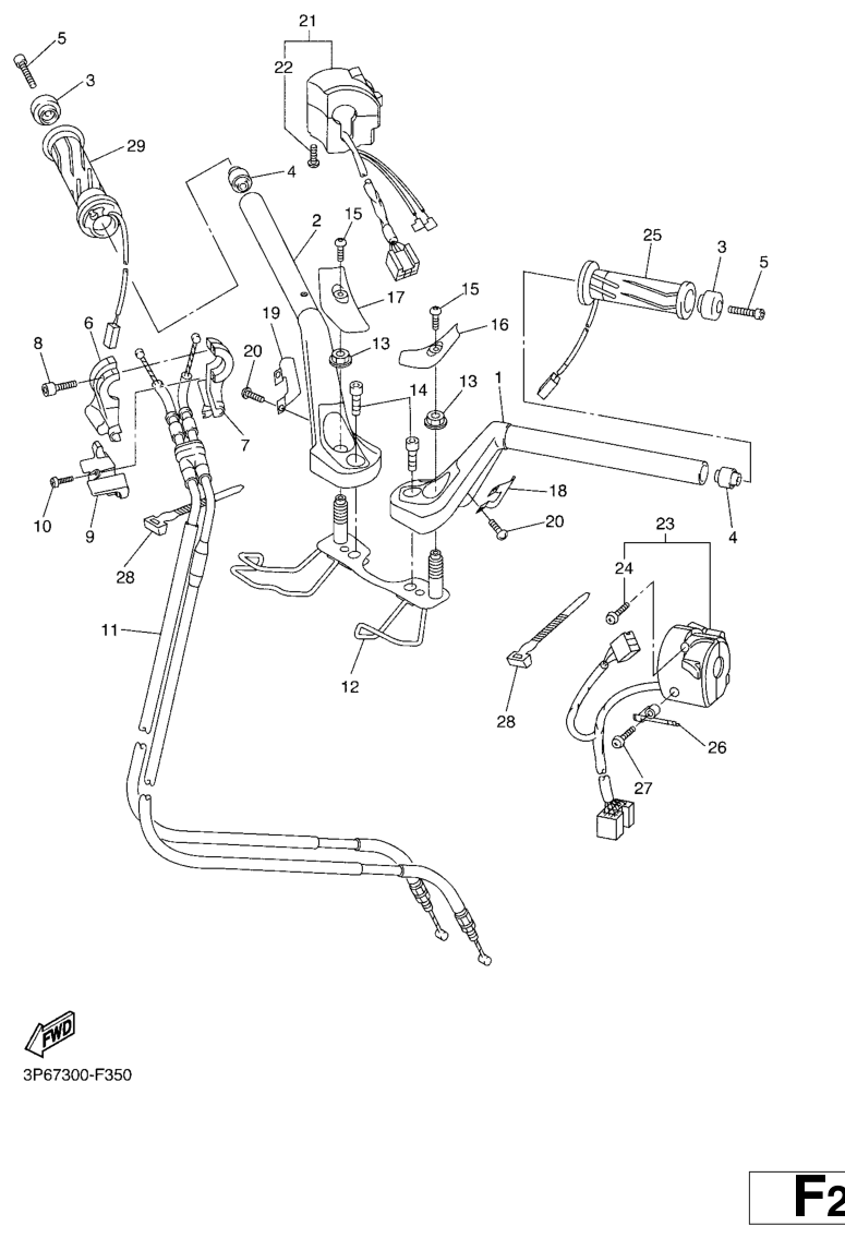 Ohjaustanko ja vaijerit, FJR1300A 2007, FJR1300, 1300 cc, Yamaha -varaosa luettelot