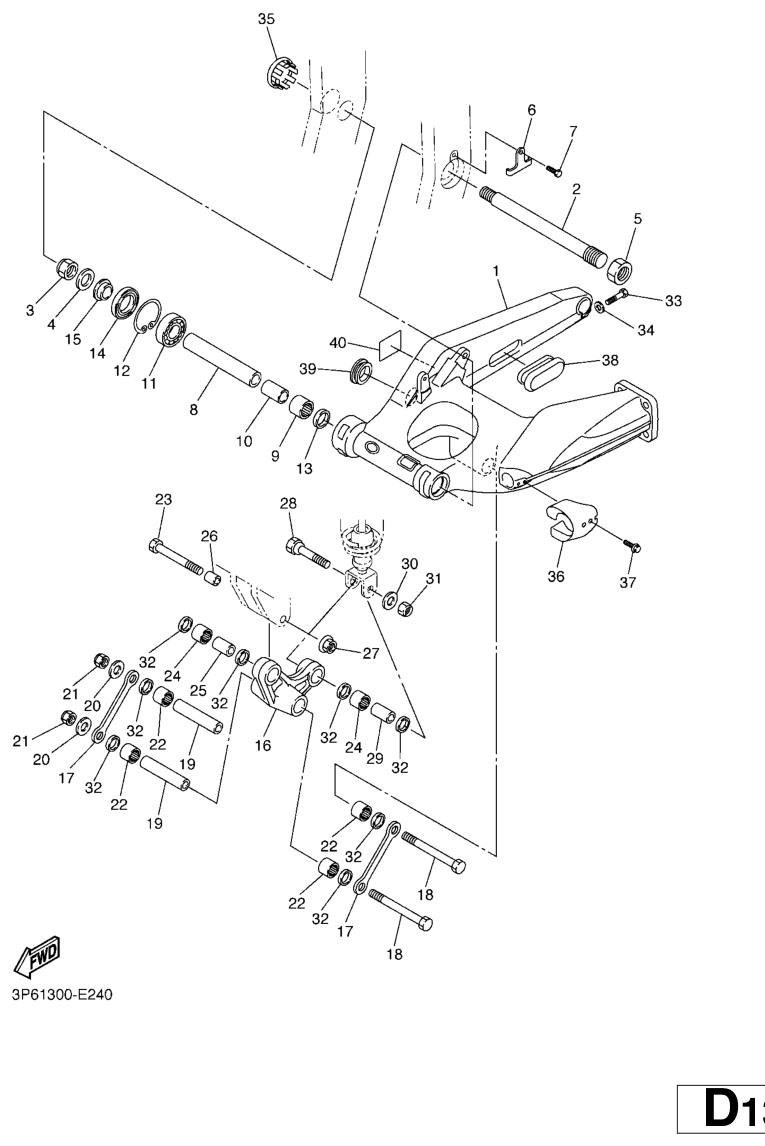 Rear arm, FJR1300A 2007, FJR1300, 1300 cc, Yamaha -varaosa luettelot